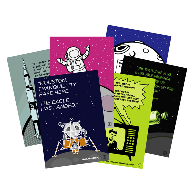 Scarica la nostra Applicazione ed inquadra col tuo smartphone la cartolina, scoprirai una dopo l’altra tutte le fasi dell’allunaggio